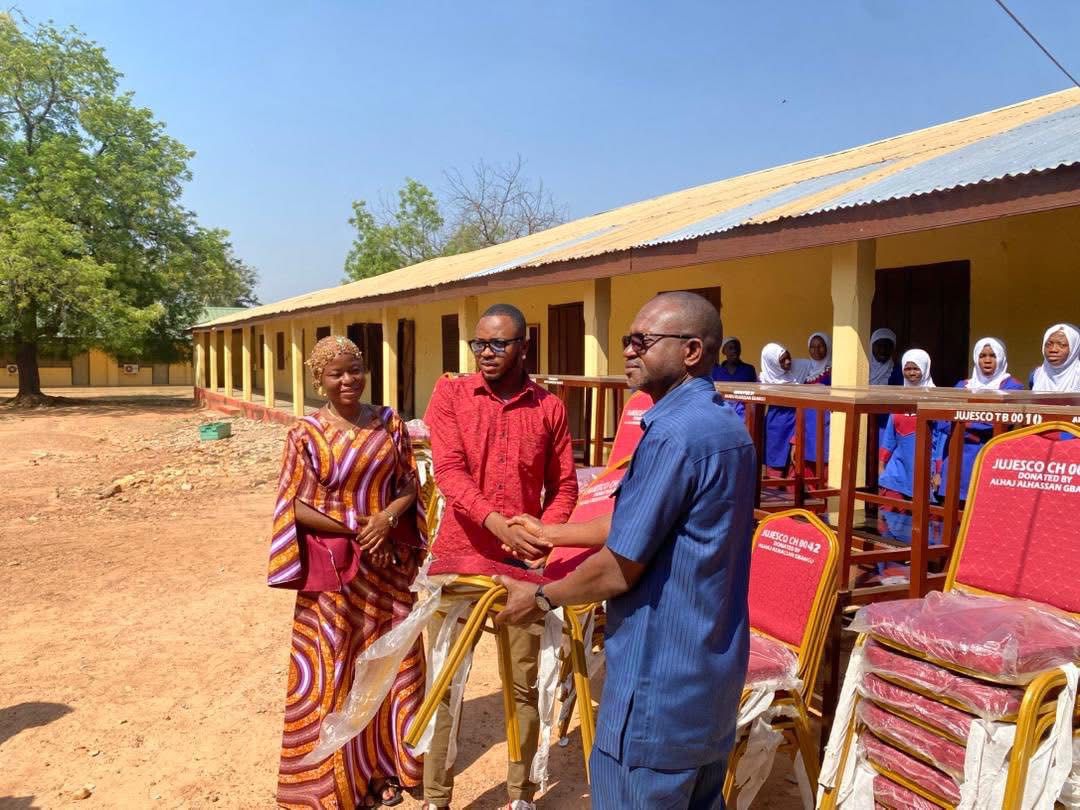 A prominent philanthropist, Alhaj Al-hassan Uthman Gbangu, has donated a consignment of chairs and tables to Jujeidayiri T.I Ahmadiyya Muslim Junior High School in a move aimed at improving the learning environment.
